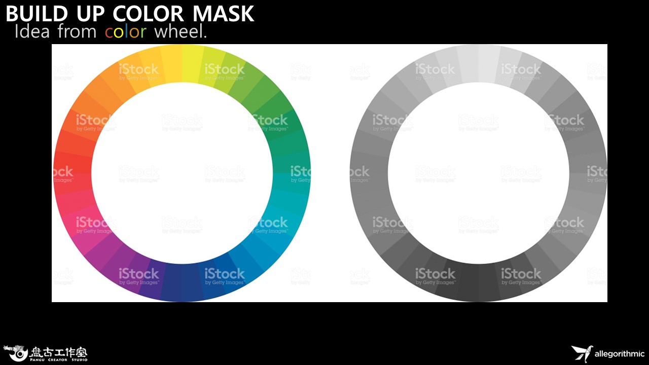 색상환(Color Wheel) 에서 착안 한 Color mask 테이블 이다.