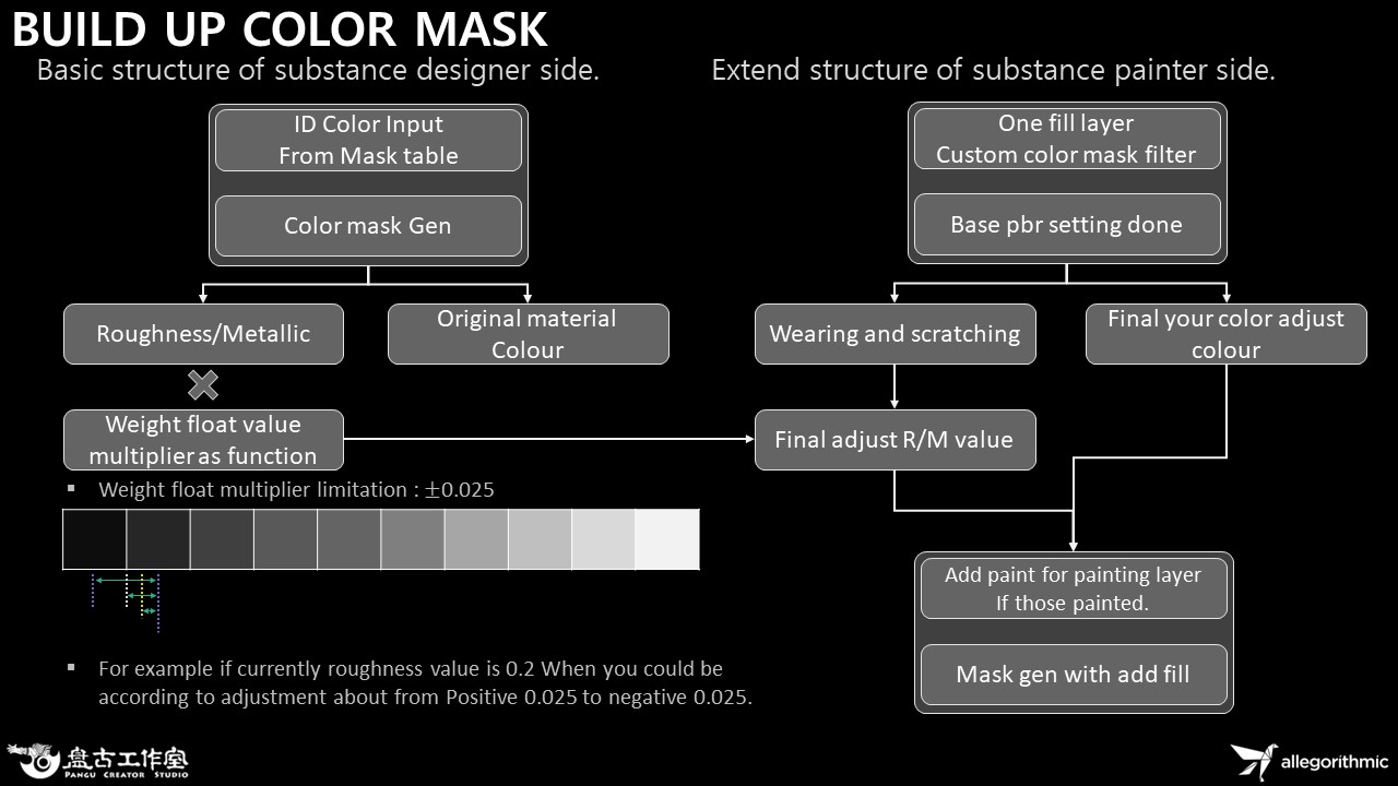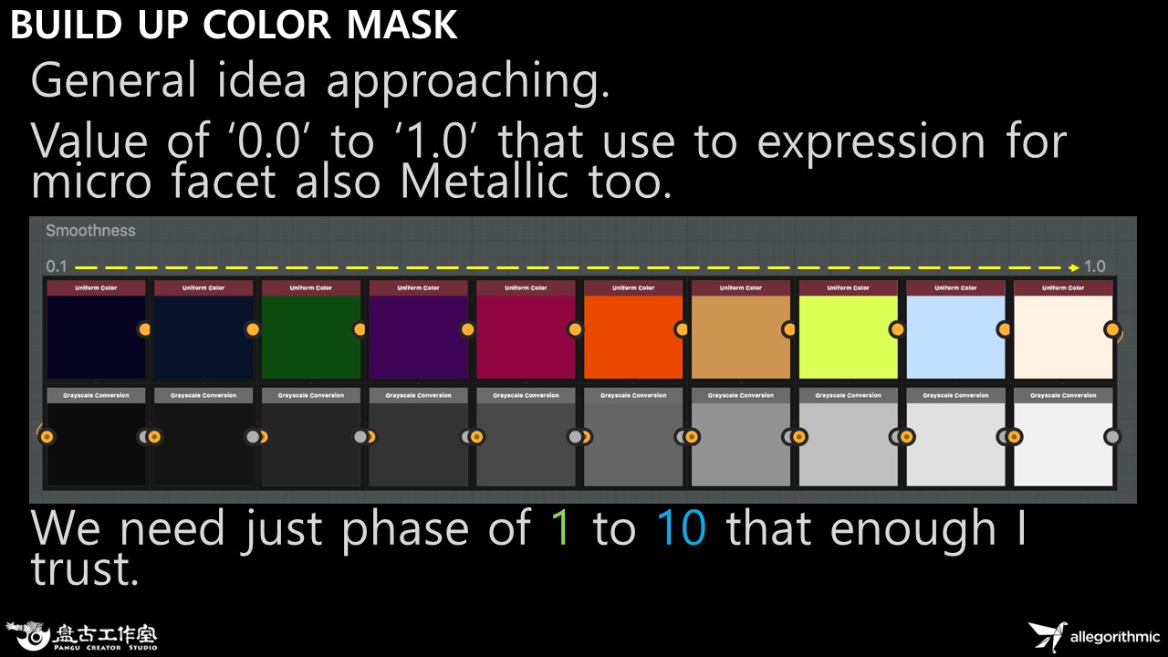 매우 기본적인 어프로치에 대한 기사이기 때문에 주의 해야 합니다. 메탈릭은 0과1 형식으로 각 컬러마스크 차트마다 선택 토글이 존재 해야 합니다.