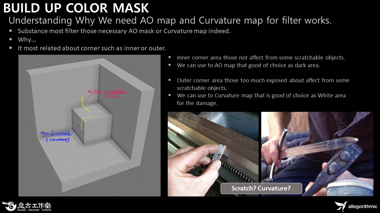 AO 역시 조금 더 강도를 높여서 출력 하는 것도 좋은 방법이 될 수 있습니다. 페인터의 AO 계산식을 보면 스팩큘러 셈플러의 밀도를 사용 하여 밝은 부분에서 AO 가 감소 하도록 Shader 에서 처리 해 주고 있지만