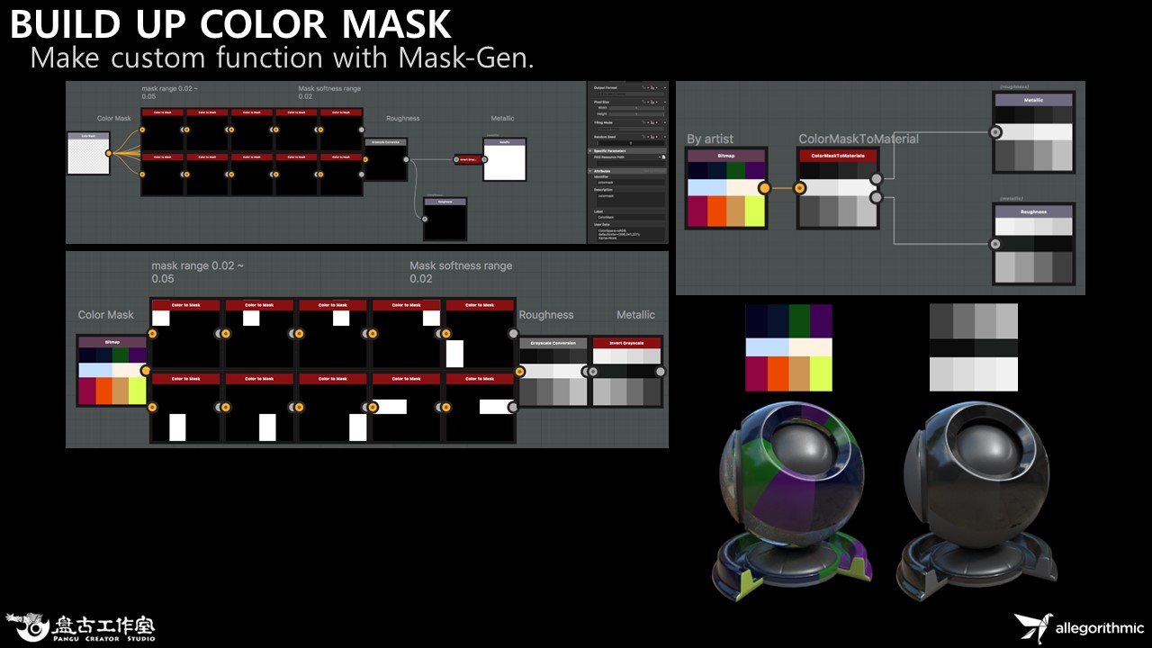 좀 더 단순화 해 본다면 메탈릭에 대한 정의는 0 또는 1로 구분 하는 것이 일반적으로 바람직 하며 컬러마스크는 메탈릭 셀렉션 마스크에서 셀렉션 가능하도록 구성하는 것이 단순할 것이다.
