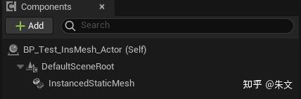 블루프린트로 구현하였습니다. Actor를 생성하고 InstancedStaticMeshComponent(이하 ISMC)를 추가합니다.