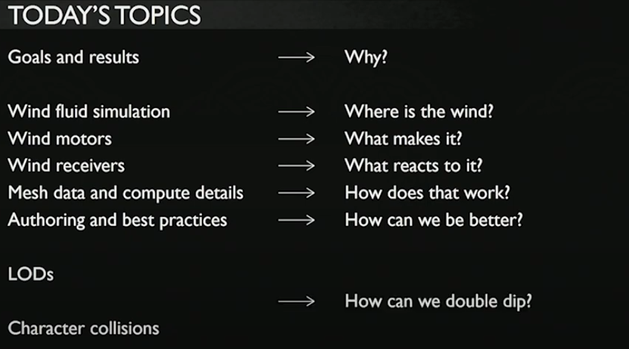 - 전역 윈드 필드: 쓰시마의 회전자 설계 도입, 식생의 전체 표현 구동