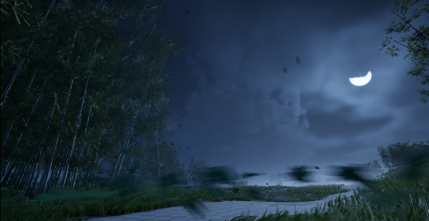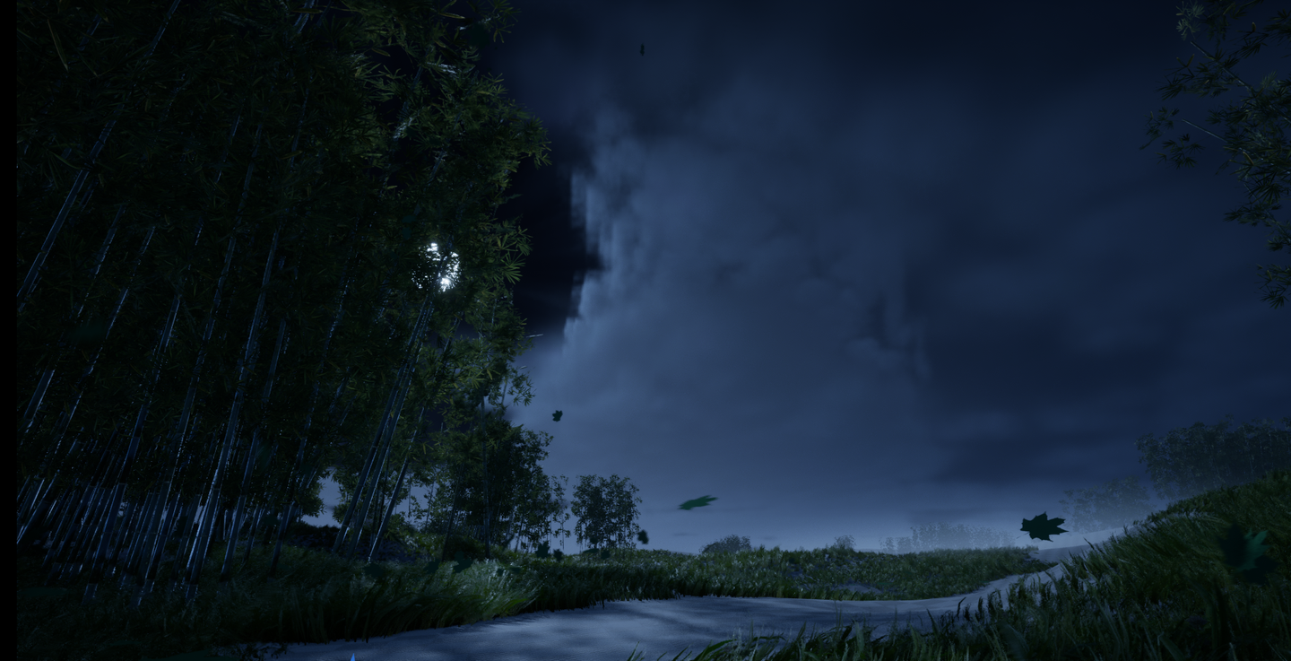 낙엽은 분명히 자체 기본 물리학을 가지고 있지만, 분명히 불길이 낙엽에 영향을 미치는 것을 볼 수 있습니다. 이러한 영향은 회전 파티클을 통해 낙엽 속도장의 크기와 방향을 변경하여 구현됩니다. 이는 쓰시마 내의 윈드 필드 표현이 모두 이러한 부드럽고 원활한 전환이며, 특별히 돌출된 날카로운 인터랙션 표현이 나타나지 않는다는 점에서 명백합니다.