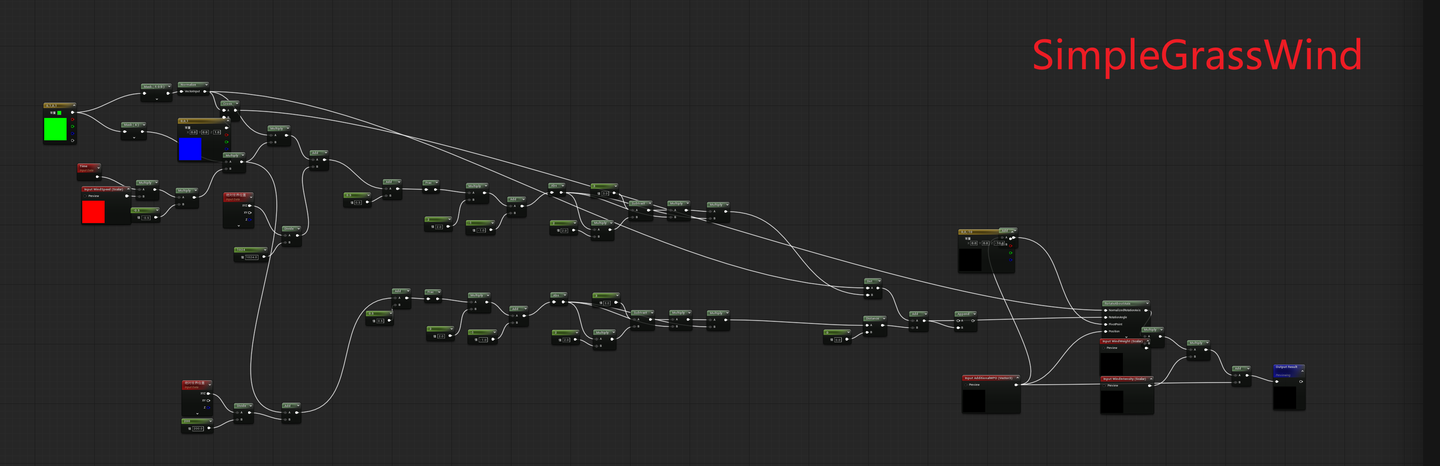 SimpleGrassWind를 클릭하여 들어가면 머티리얼 함수가 매우 복잡합니다: