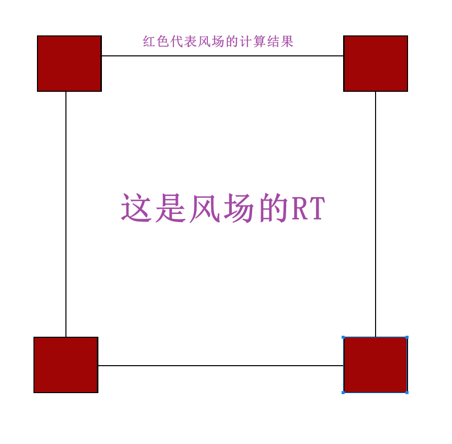 해결 방안은 그림에서 볼 수 있듯이 네 모서리에서만 절반의 데이터를 계산하면 주기적인 연속 결과를 거쳐 최종적으로 얻는 것이 완전한 윈드 필드 RT입니다.
