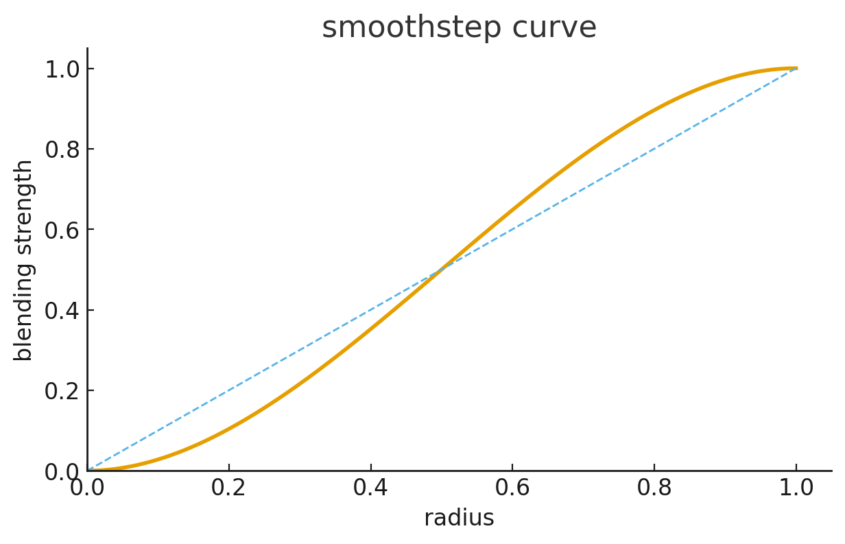 - 거리 기반 블렌딩: 부드러운 감쇠 곡선을 통한 자연스러운 경계 처리