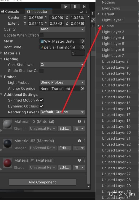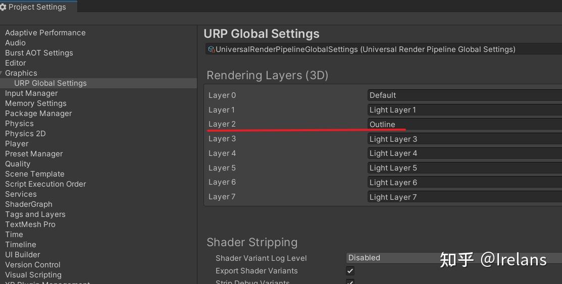 RenderLayerMask의 두 번째 비트를 외곽선 대상 레이어로 사용했습니다. 필요 시 Render Feature 코드에서 바꿔도 됩니다.
