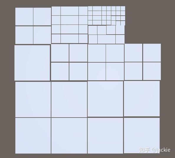 다음으로, 이 타일들을 어떻게 배치하면 전체 텍스처 아틀라스의 면적을 최소화할 수 있을지 고민합니다.