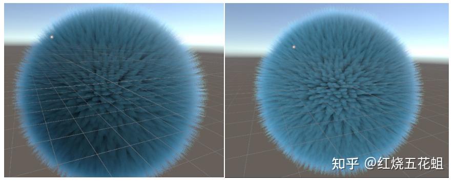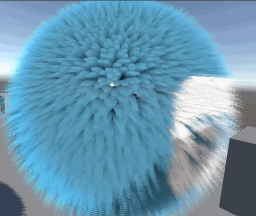Unity의 Graphics.DrawMeshInstancedIndirect를 사용해 같은 메시를 여러 인스턴스로 그리되, 각 인스턴스(=Shell 레이어)의 높이를 달리 줍니다.