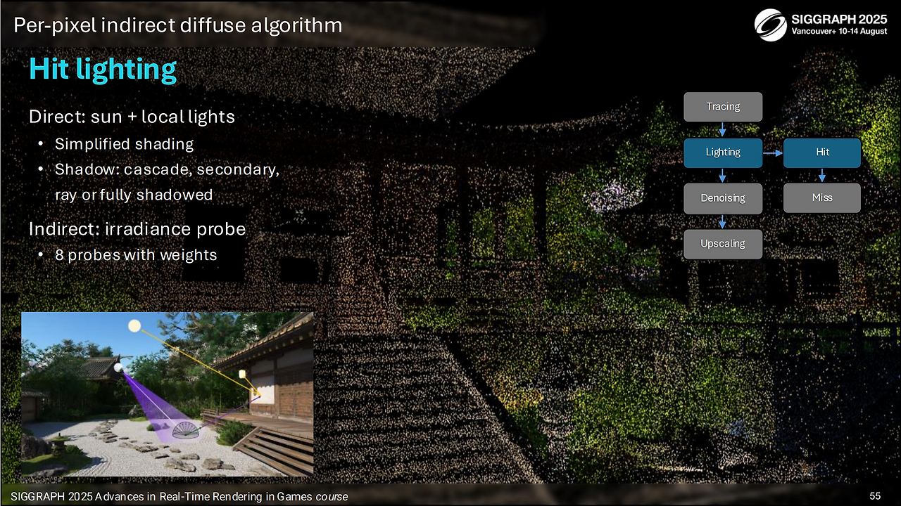 이렇게 하면 디노이징 단계에서 픽셀 단위로 전체 방향성 방사휘도를 재구성할 수 있고, 그 결과를 이후 패스에서 유연하게 다시 사용할 수 있습니다.