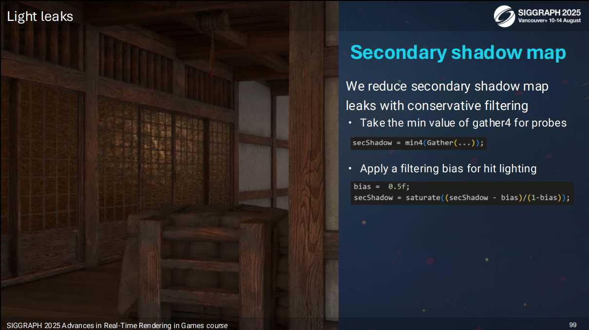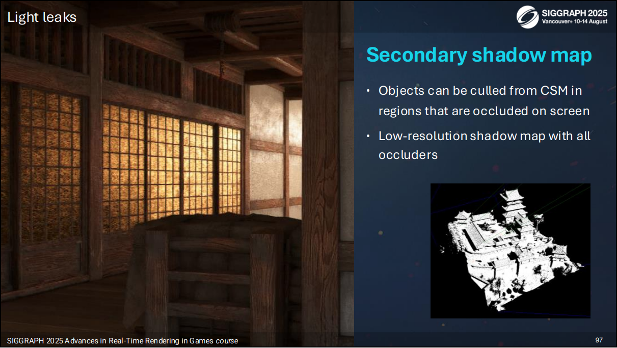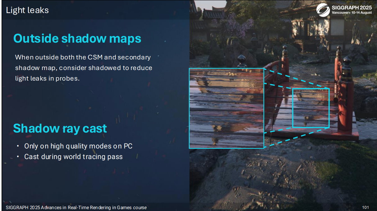 고사양 플랫폼에서는 이 문제를 줄이기 위해, 2차 섀도 맵 범위를 벗어나는 스페큘러 반사에 대해 별도의 섀도 레이를 추가로 쏩니다.
