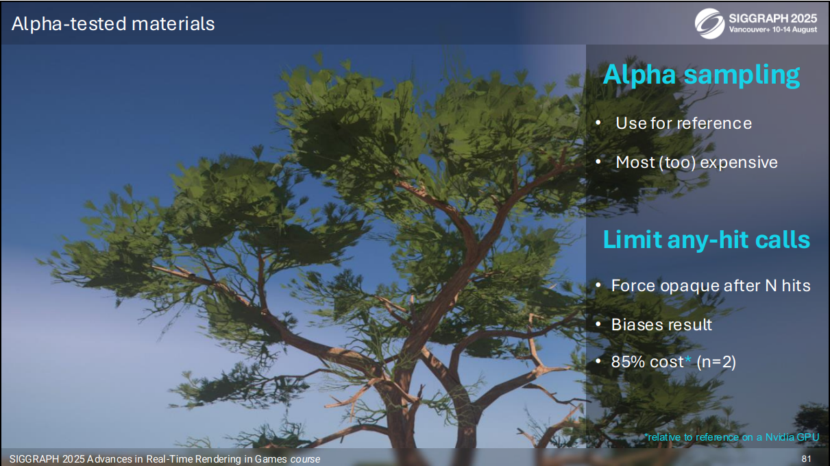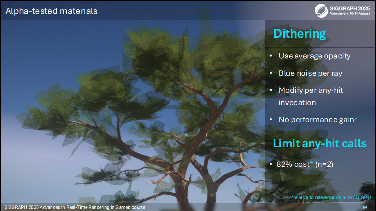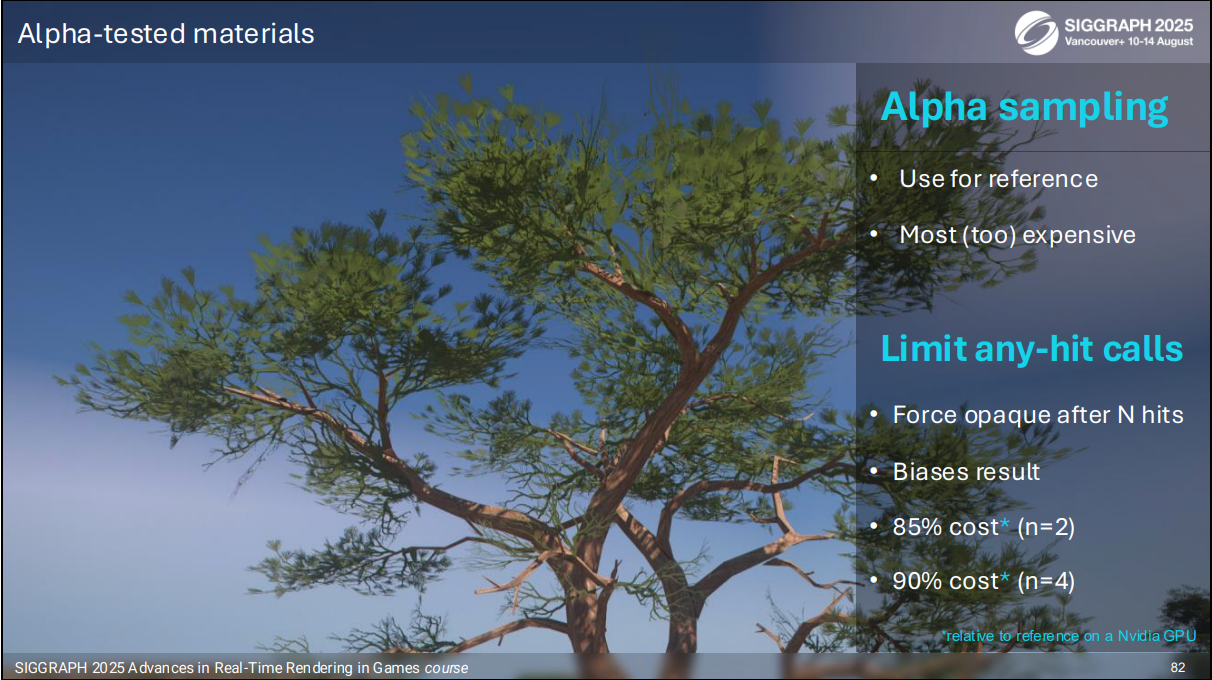 다만 비용을 통제하기 위해 any-hit 셰이더 콜 수는 최대 4회로 제한했습니다.