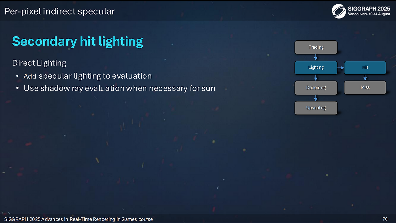 고사양 플랫폼에서는 이 단계에서 추가 섀도 레이도 함께 쏴서, 스페큘러에서의 태양 그림자 퀄리티를 좀 더 끌어올리고 있습니다.