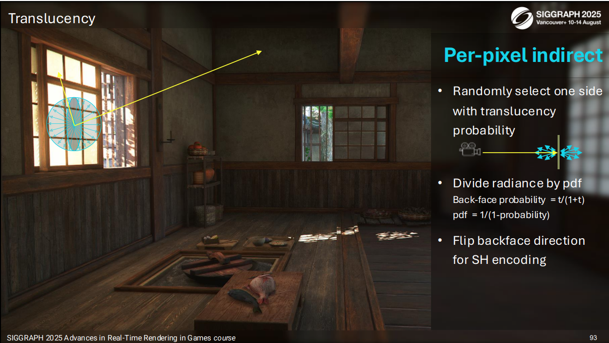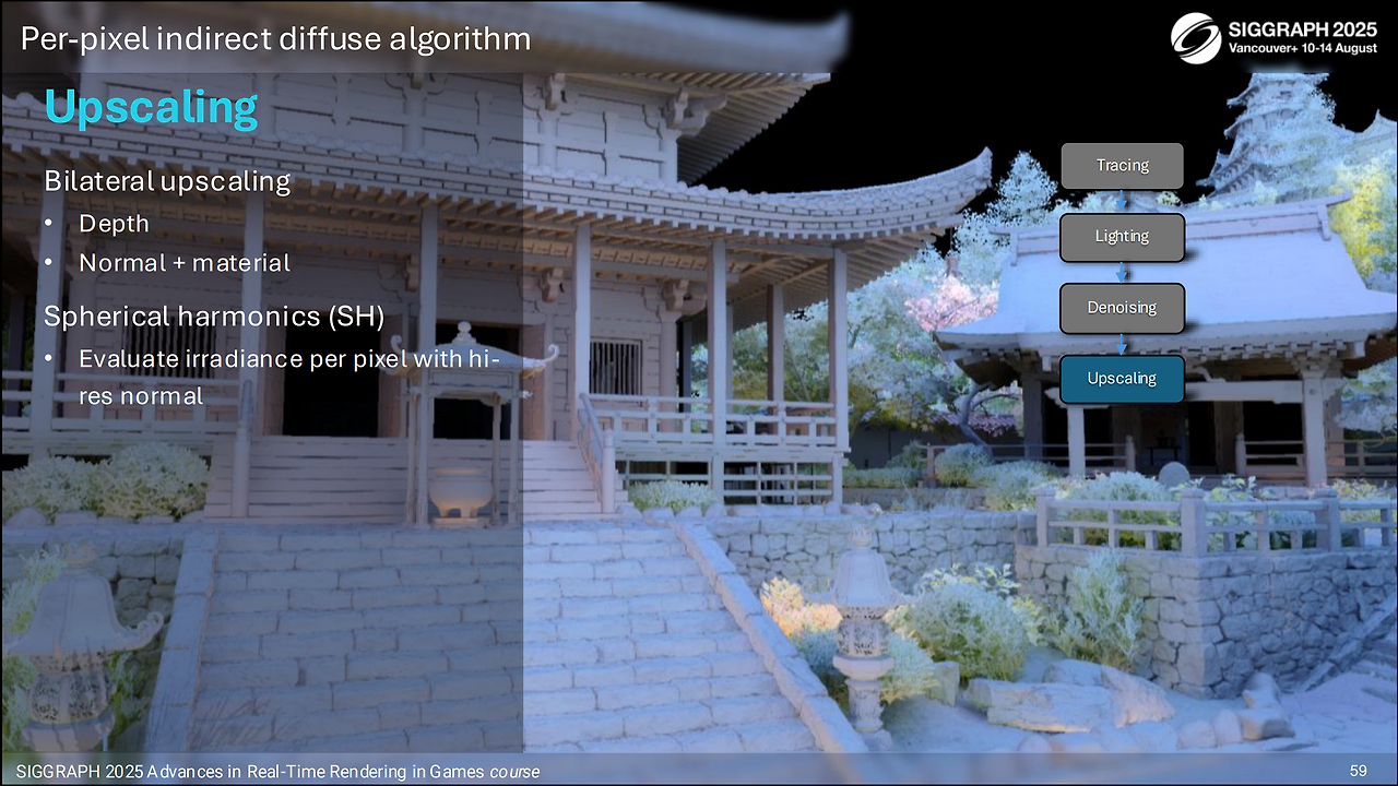 SH 계수 자체를 업스케일한 뒤, 풀 해상도 노멀을 사용해 픽셀 단위에서 간접 조명을 다시 평가합니다.