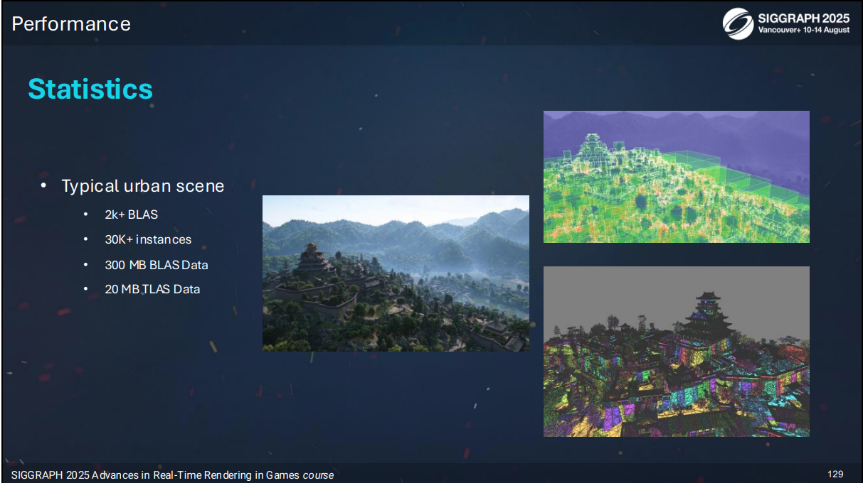런타임에는 약 2,000개의 BLAS와 30,000개의 TLAS 인스턴스가 로드되어 있고, 이들이 합쳐서 대략 320MB 정도의 메모리를 사용합니다.