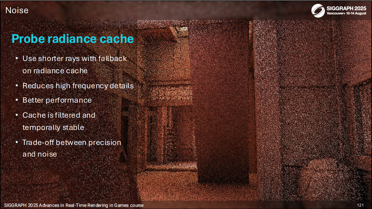 그래서 일정 거리 이상에서는 레이를 더 이상 쏘지 않고, 대신 프로브 방사휘도 캐시를 폴백으로 사용하는 구조입니다.