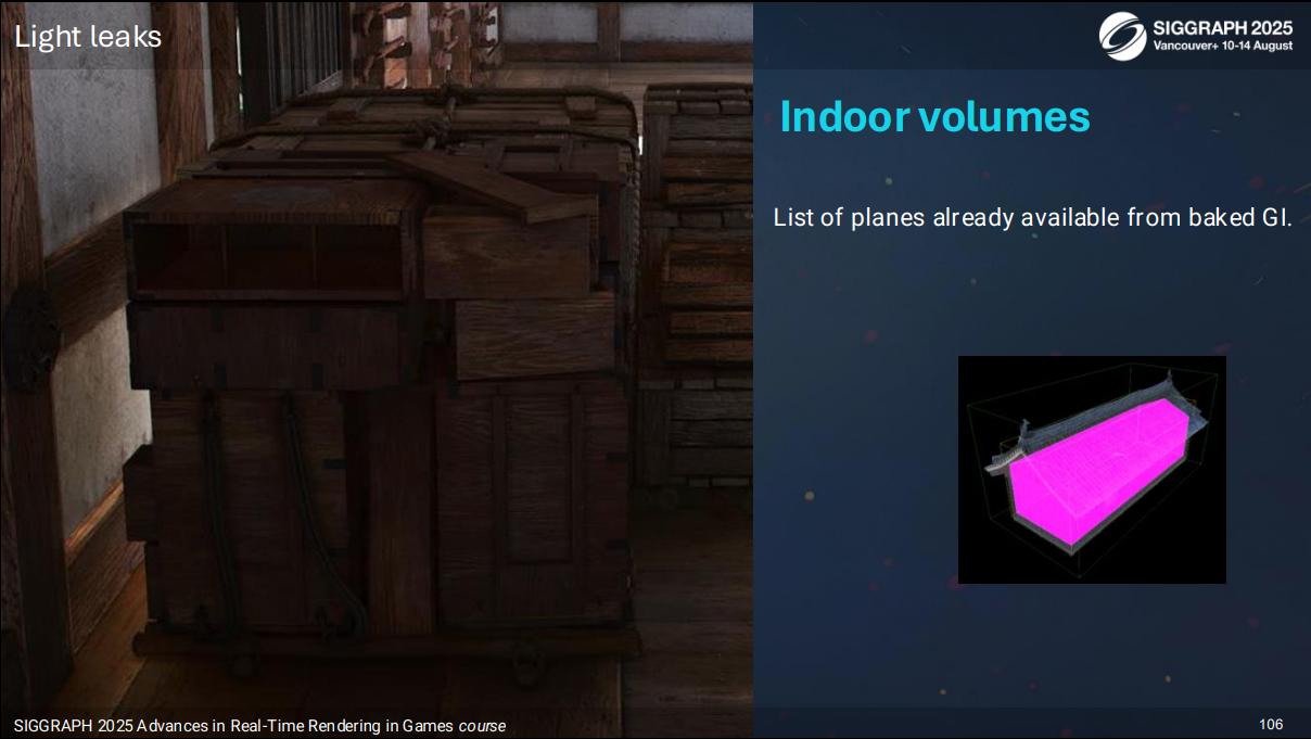 2차 히트 지점에서 프로브 볼륨으로 간접 조명을 계산할 때, 주변 8개의 프로브를 모두 가져다가 쓰는데, 실내·실외를 가르는 벽 근처에서는 일부 프로브가 실외 조명을 잔뜩 가져와 버립니다.