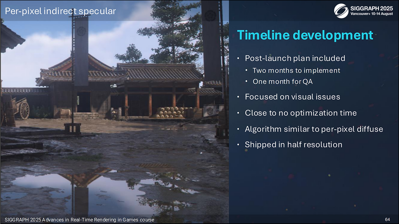 이 스페큘러 패스는 원래 AC 섀도우 출시 이후에 추가할 계획이었습니다. 그런데 게임이 한 차례 연기되면서, 그 사이에 이 기능을 미리 넣어보자 하는 방향으로 바뀌었습니다.