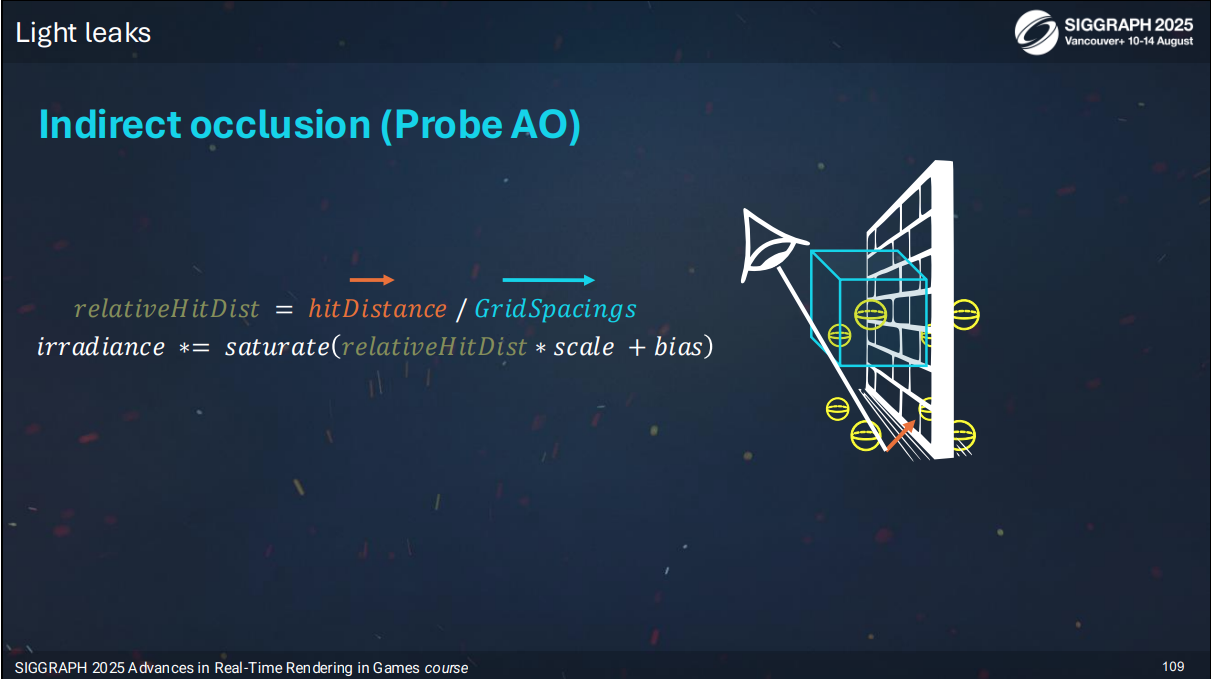 이 문제를 완화하기 위해, 레이 추적 거리와 프로브 범위를 비교해서, 레이 길이가 프로브 범위보다 충분히 짧다면 "프로브 평가에서 놓친 미세 차폐가 있다"고 가정합니다.