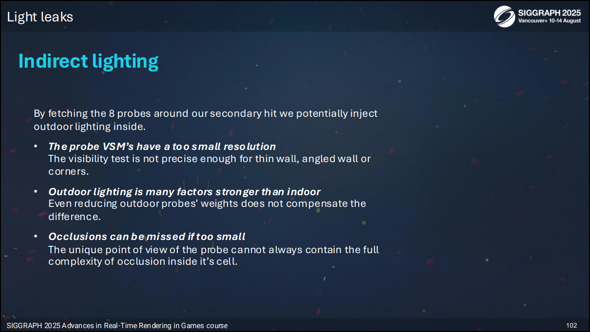 프로브는 기본적으로 하나의 시점에서만 장면을 평가하기 때문에, 프로브 범위 안의 "미세 가시성(micro-visibility)"을 모두 포착하지 못합니다.