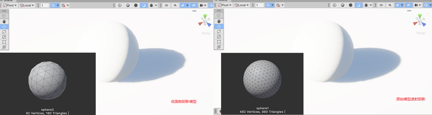 ShadowMap 렌더링 과정에서 투영 오브젝트의 폴리곤 수를 줄이기 위해, 게임에서는 보통 저폴리 모델을 그림자 전용 모델로 사용합니다.