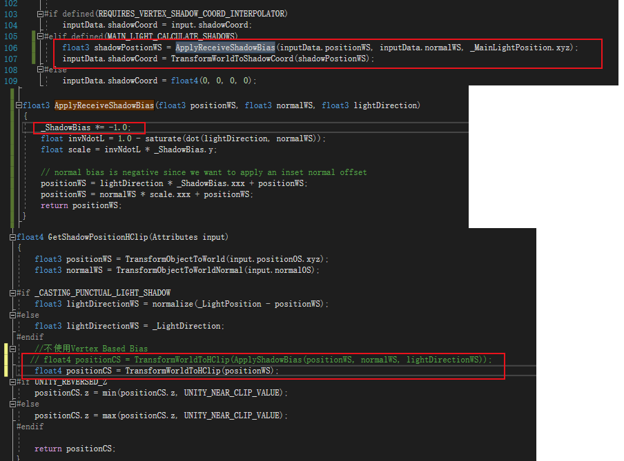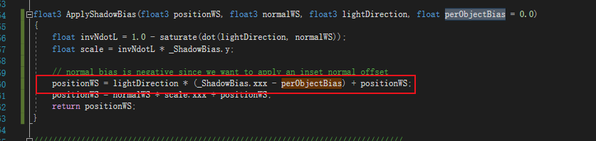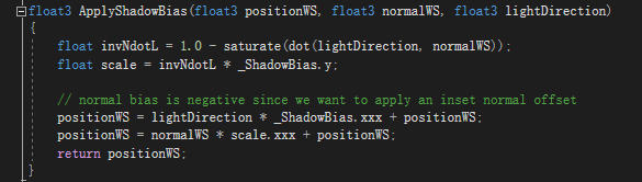 코드에서 빨간 박스 부분은 그림자 안정성을 높이고, 카메라 변화 시 발생하는 그림자 유영(shadow swimming) 문제를 완화하기 위한 것입니다.
