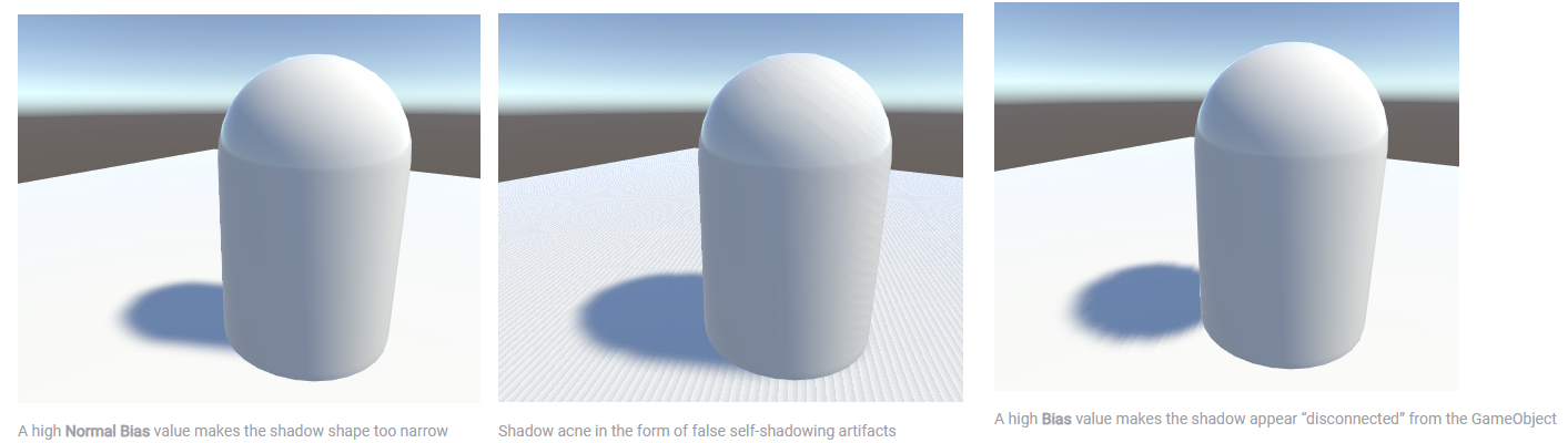 - 여기서는 머티리얼에 PerObject 셰도우 바이어스를 추가하여 모델마다 조정하는 것을 권장합니다(투영 오브젝트의 버텍스 바이어스에만 적용).