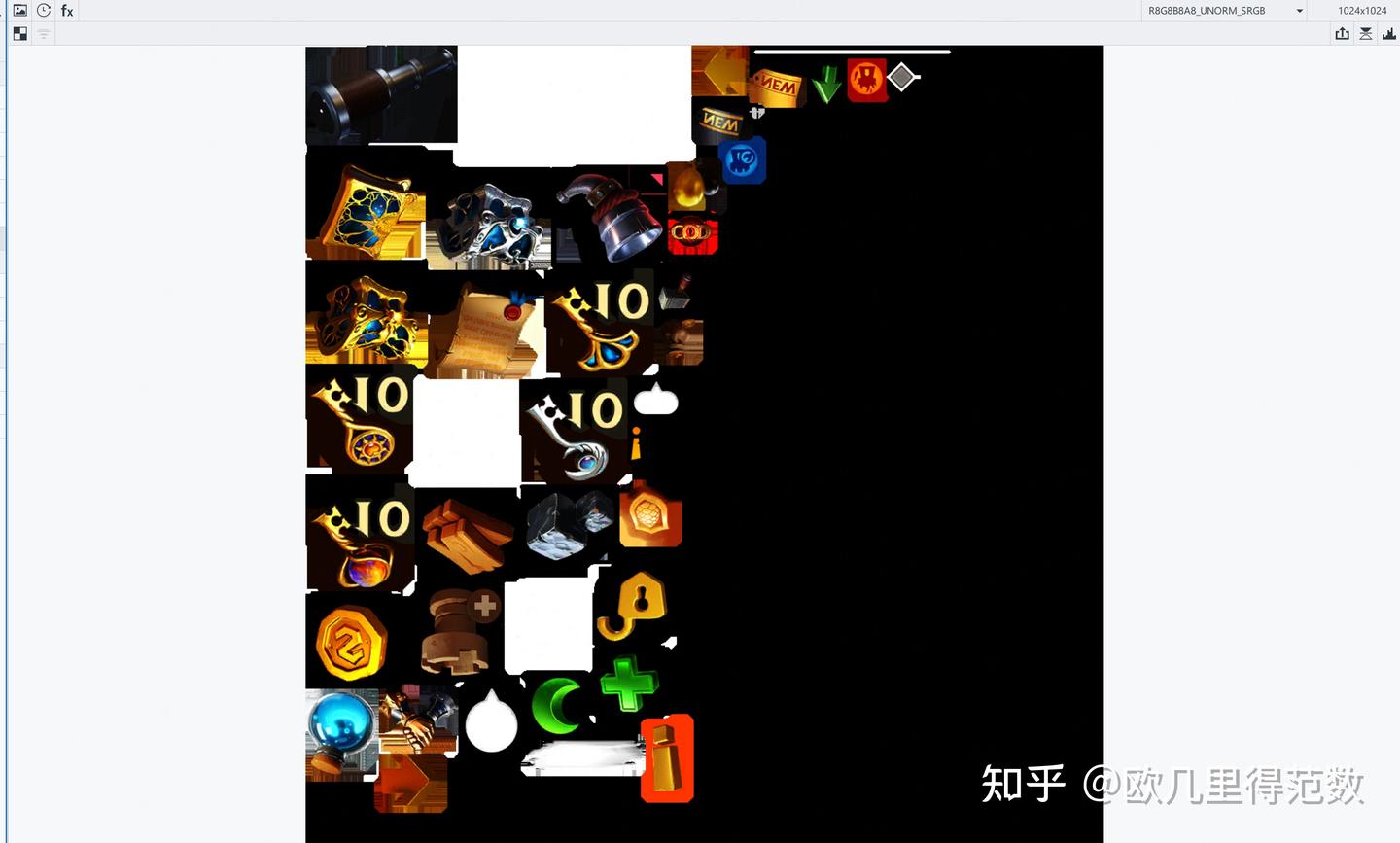 HUD 텍스처는 1024×1024 아틀라스를 사용합니다. 아틀라스의 장점은: