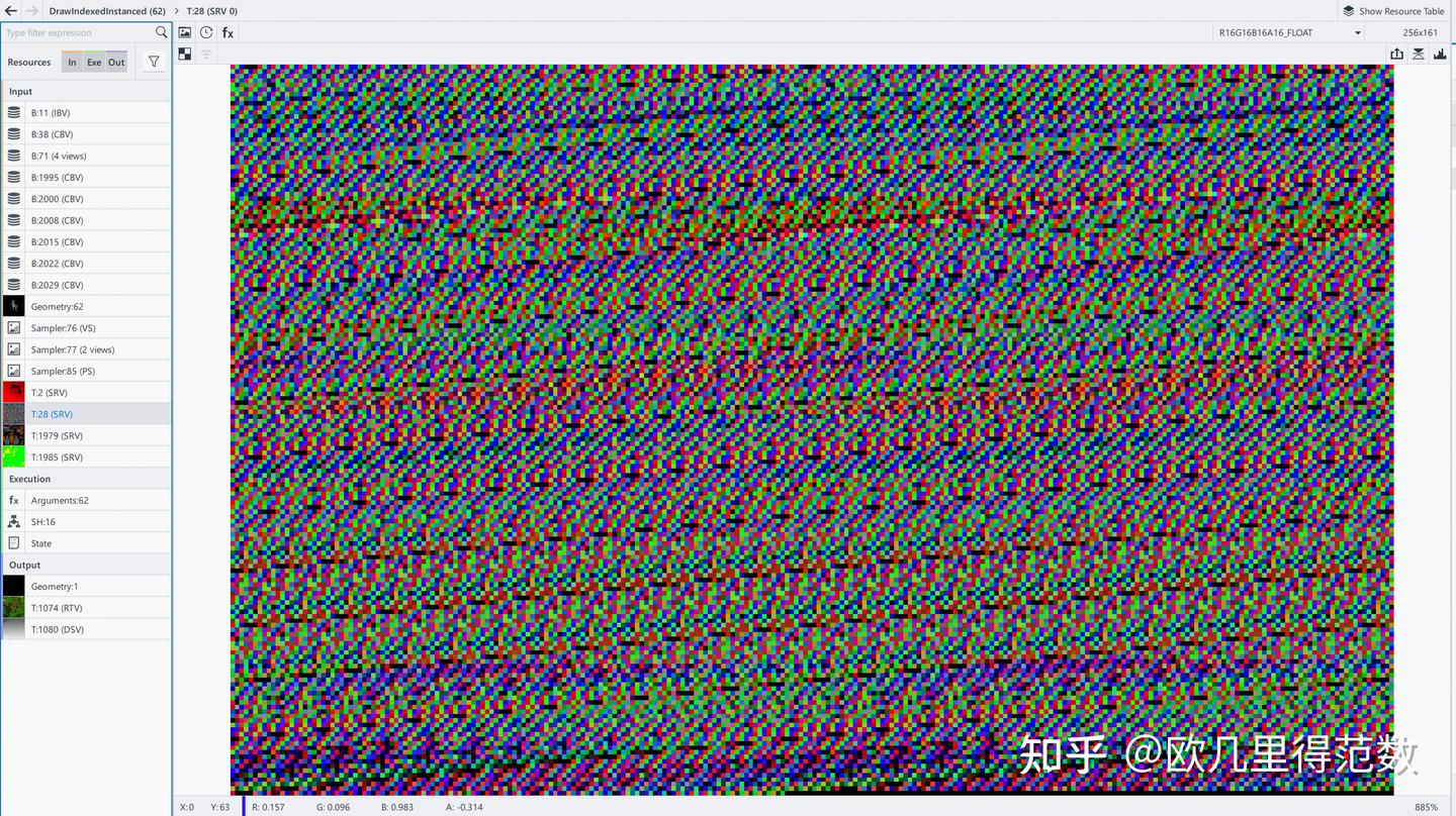풀/나무 인스턴스 렌더링 이후에는 내성의 “다른 3D 인물”(영웅 계열로 추정)을 추가로 렌더링합니다. 이쪽 텍스처는 256×256으로 비교적 낮은 편인데, 성능을 위해 텍스처 정밀도를 희생해 GPU 부하와 대역폭을 줄인 것으로 보입니다. 어차피 화면 점유율이 낮은 캐릭터라면 512×512가 크게 필요 없다는 판단도 합리적입니다.