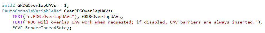 소스 코드를 꼼꼼히 읽다 보면 또 다른 단서들을 발견할 수 있다. 예를 들어, D3D12RHI에도 AutoFlushUAV 기능이 없는 게 아니라 그냥 깊이 숨어 있었다. 아래 그림처럼 RDG의 일부가 되어 있는 것이다.