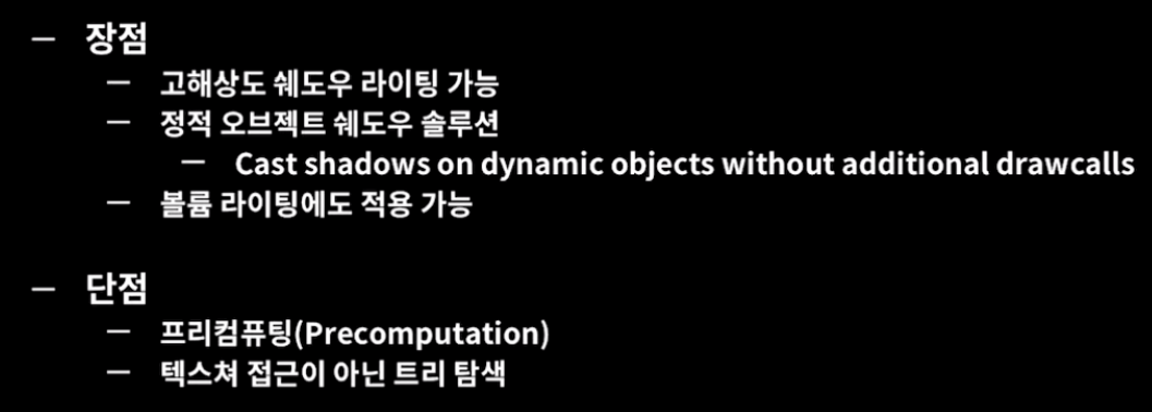 하지만 복셀화된 그림자는 이미 그림자 정보를 옥트리 공간에 구워두었기 때문에 동적 오브젝트에 동일한 그림자 효과를 적용할 수 있고 드로우 콜이 별도로 증가하지 않는다는 장점이 있습니다.