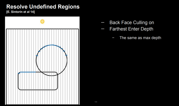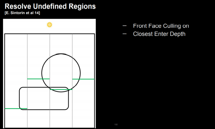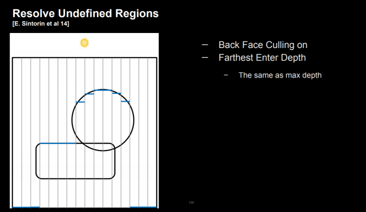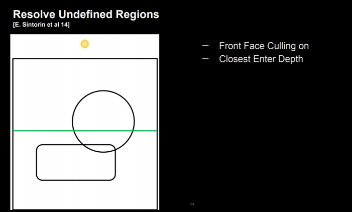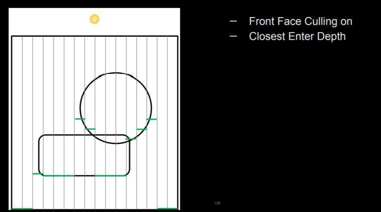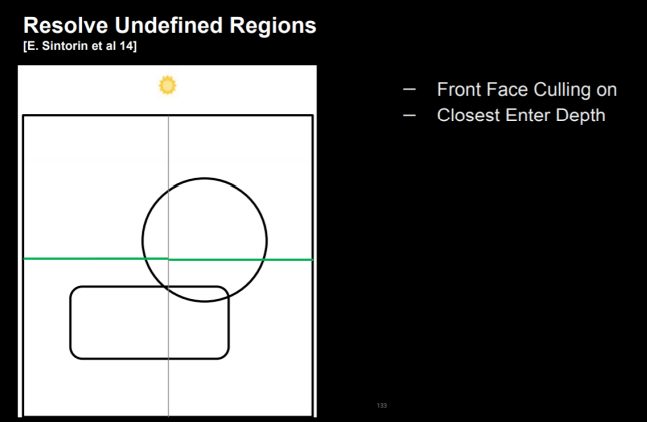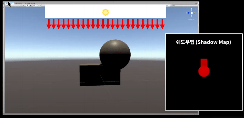 일반적인 그림자 처리 방법에서는 위와 같이 깊이를 사용하여 그림자가 있는지 여부를 결정하여 그림자를 그릴 수 있습니다.