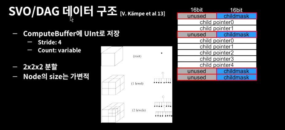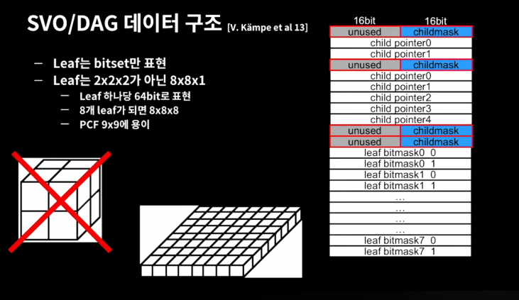 균일한 그리드를 사용할 경우 비효율적이기 때문에 SVO 구조를 사용합니다.