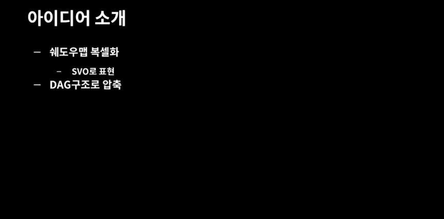 신동네트웍스 기술센터의 유니티 엔진 담당 팀장이랑 이것에 대해서 대화 했었습니다... 그때 그 친구가 복셀라이징은 용량때문에 모바일에서 못쓸꺼라고... 그러다군요. 그래서 제가 DAG 압축 부분도 함께 참고해서 봐라고 했습니다.... 그때 유니티 엔진쪽 팀장이 DAG 가 뭐냐고 ... 뭔가 되게 공격적으로 반응했던 기억은 잊혀지지 않습니다. 개인적으로 컴퓨터 그래픽스에 역사가 있는 좋은 교수님 아래에서 전공 석사 이상하고 업계 이력 다 밟고 연구에 매진 하는 사람들만 엔진 담당 엔지니어가 되야 할 것 같다는 생각을 그때 더 확실히 알게 되었.... 쿨럭...