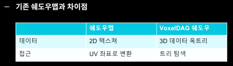 2020년인가??? 신동네트웍스에서 테크아트팀 팀장으로 근무 할 때 유니티 코리아에서 개발하고 있던 복셀기반 쉐도우 처리 발표영상을 보고 팀원들에게 정리 해 주기 위해 정말 유투브에 올라온 영상을 죽어라 구간반복(단기기억력이 좋지 않아서요!) 해서 요약 했던 기억이 참....