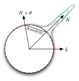 기본 아이디어는 피부 표면을 원으로 가정하고 두 가지 매개 변수(피부 표면의 경사각과 곡률)에 따라 확산 프로파일을 통합하는 것입니다. 그는 이 두 가지 요소가 피부 산란에서 가장 중요한 부분이라고 생각합니다.