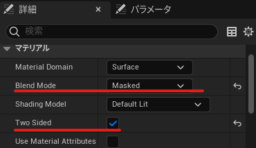 주요 변경 사항은 Blend Mode, Shading Model, Two Sided 세 가지입니다.