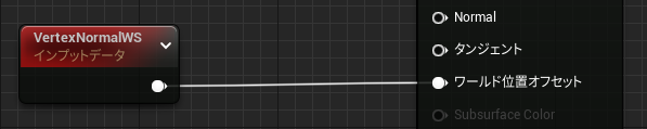 월드 위치 오프셋은 머티리얼을 적용하고 있는 메시의 버텍스를 입력한 벡터만큼 이동시키므로, 노멀 방향을 입력하면 메시가 부풀어 오르는 듯한 동작을 합니다.