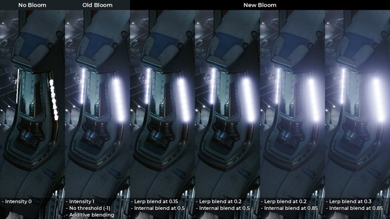 밝은 면에서 (헤헤), 우리는 언리얼 엔진의 버전을 비교하여 블룸 후처리 설정이 어떻게 진화했는지 볼 수 있습니다.