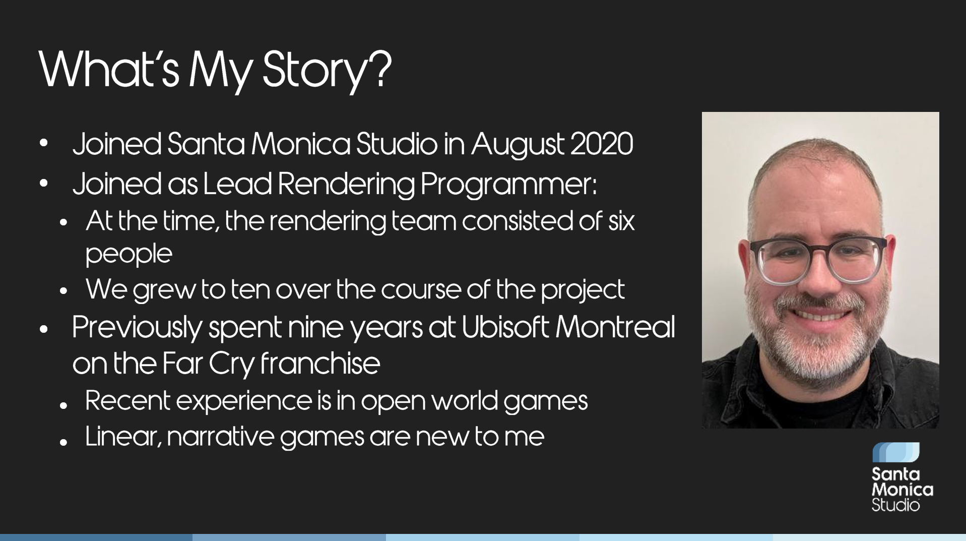 그럼 내러티브 기능부터 시작해 보겠습니다. SMS는 놀랍도록 내러티브 중심의 스튜디오입니다. 우리는 스토리를 전달할 수 있어야 하므로 렌더링 팀으로서 저희의 최우선 과제는 스토리를 전달하는 데 필요한 기능을 확보하는 것이 최우선 과제입니다.