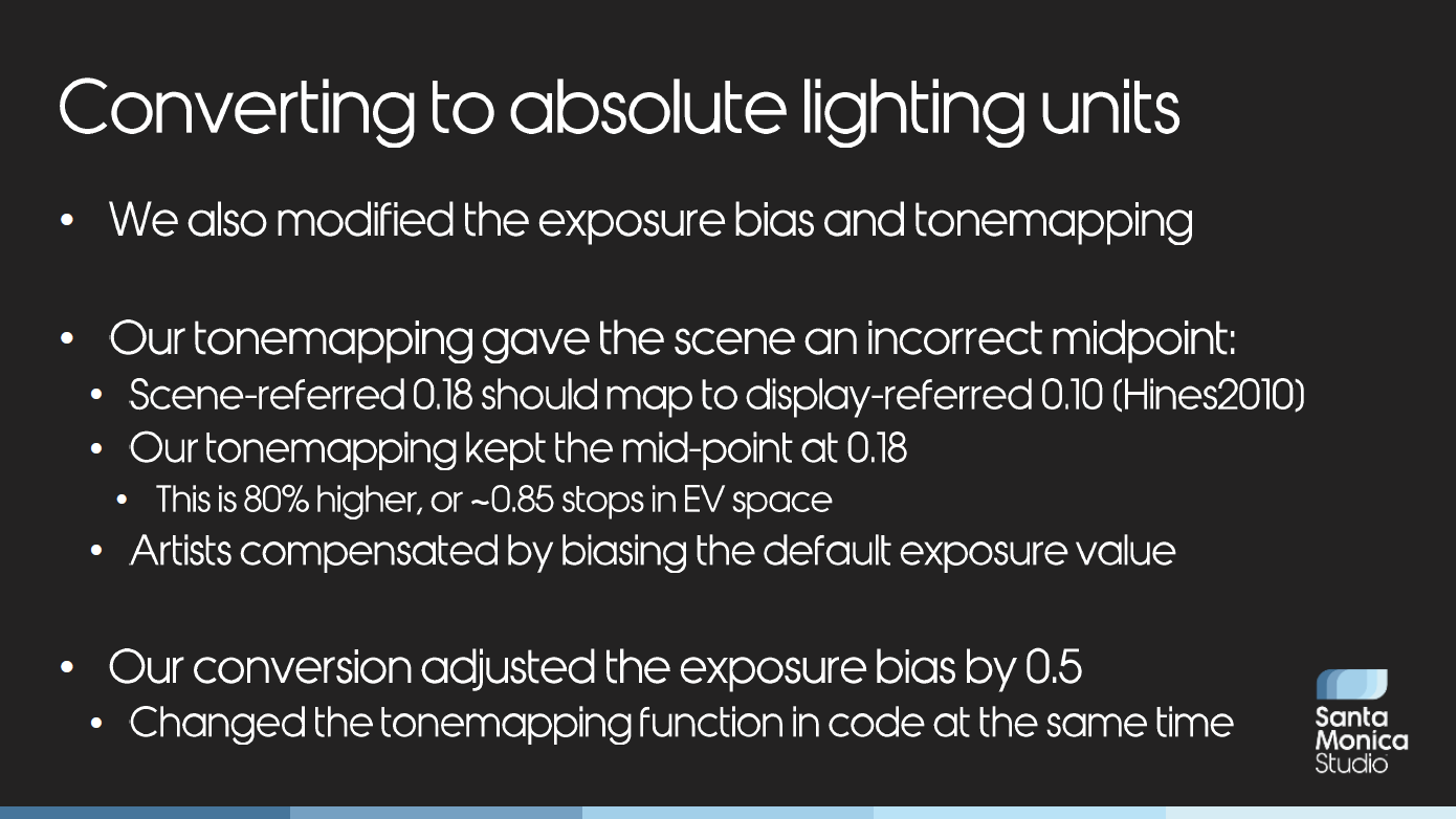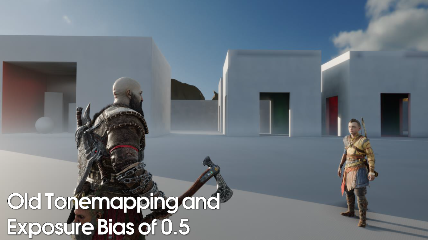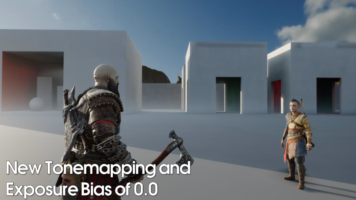 이제 새로운 톤 매핑으로 전환하면 이제 중간 점을 올바르게 처리하면 노출 편향이 더 이상 필요하지 않습니다. 이전 장면보다 약간 어둡지만 실제로는 아티스트가 의도했던 것과 매우 비슷합니다.