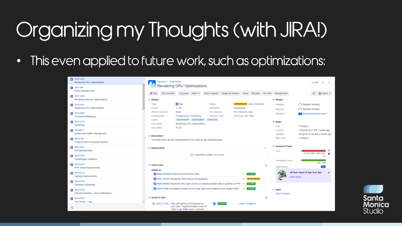 저는 프로젝트 초기에 최적화(및 메모리 절약)를 분류하기도 했습니다. 부분적으로는 데이터베이스를 정리하기 위한 것이지만, 프로젝트의 다음 단계 또는 프로젝트의 해당 단계에 진입했을 때 활용할 수 있는 작업을 확보하기 위해서였습니다.