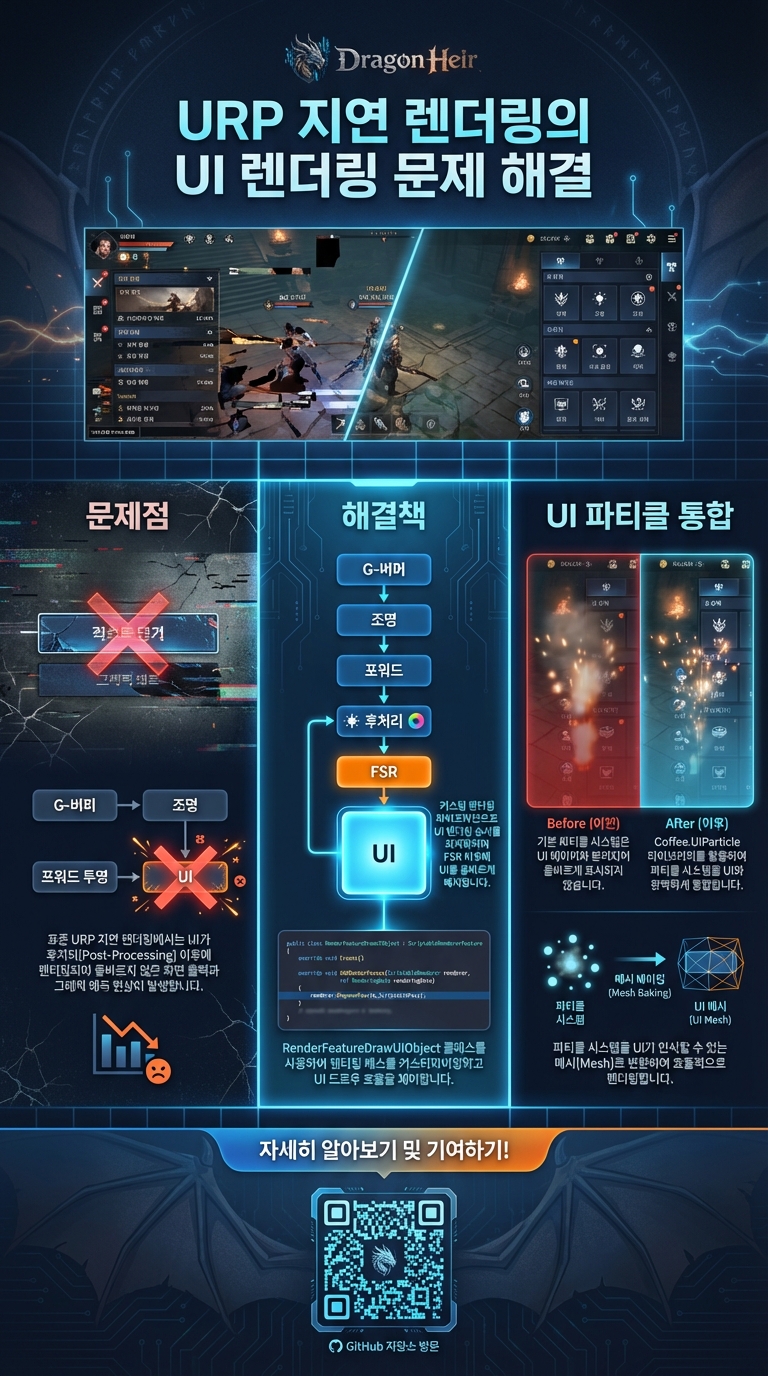메이즈라인 공식 테크 블로그 글입니다.최근 고객사에서 당면한 이슈가 있었는데요. 그 덕에 오랫만에 4년 전에 개발했던 사례가 생각이 났습니다.Unity URP(Universal Render Pipeline)에서 Deferred Rendering을 사용하는 프로젝트에서 흔히 마주치는 문제입니다. Dragon Heir: Silent Gods는 D&D(Dungeons & Dragons) 정식 라이센스를 받은 멀티플랫폼 게임으로, 고품질 그래픽을 위해 Deferred Rendering을 선택했습니다. 하지만 이 선택은 UI 렌더링에서 예상치 못한 도전을 가져왔습니다. https://www.mazeline.tech/blogs/DragonHeirDeferredRenderingUIChallenge