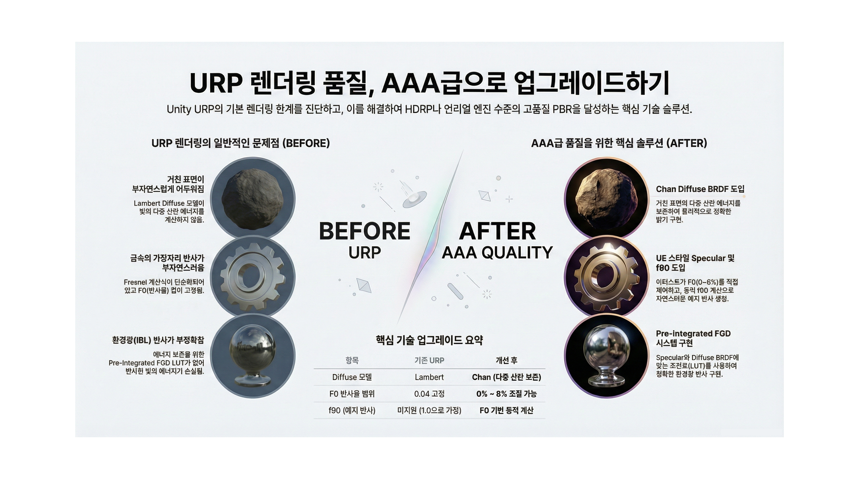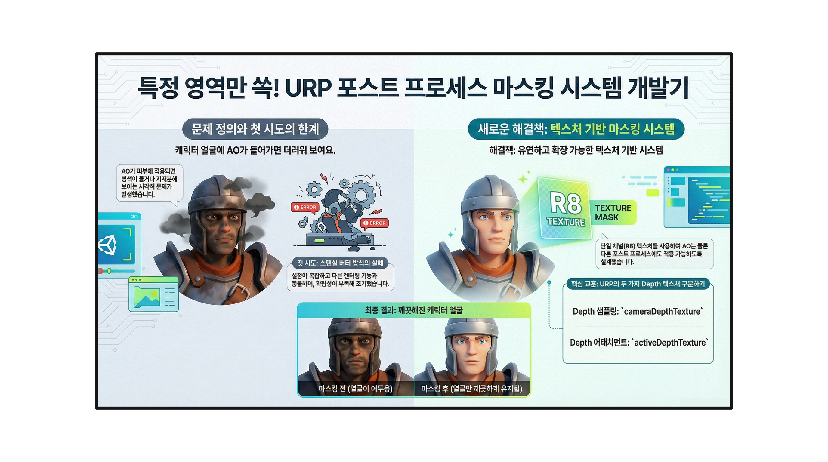 메이즈라인 테크 블로그 글을 소개하고 있습니다.Unity 6.3 코드베이스 분석을 통해 드러난 Surface Cache 기반 실시간 글로벌 일루미네이션(GI) 기술은 씬의 조명 정보를 패치 단위로 저장하고 업데이트하는 혁신적인 기법을 핵심으로 합니다. 이 시스템은 Spherical Harmonics 압축과 계층적 그리드 시스템을 활용하여 동적 환경에서도 메모리 효율성을 유지하며 정교한 빛의 반사를 구현합니다. 특히 최신 연구 성과인 ReSTIR와 RIS 같은 샘플링 기술을 도입하여 적은 계산량으로도 오프라인 렌더링에 가까운 고품질 시각 효과를 실시간으로 제공합니다. 현재는 비활성화된 상태이지만, 이 기술이 정식 도입되면 게임 내 라이트와 오브젝트의 변화에 즉각 반응하는 라이브 GI 환경이 구축될 것으로 ..
